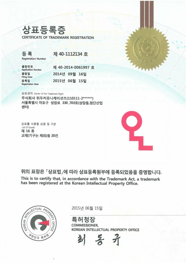 [Korea/Trademark] OLL 16 Class 페이지 정보 작성자 WeDu 댓글 0건 조회 6,618회 작성일 19-06-04 10:46 본문 2015-06-15 Trademark 40-1112134 16 Class List Previous[Korea/Trademark] OLL 09 Class 19.06.04 Next[Korea/Trademark] OLL 41 Class 19.06.04